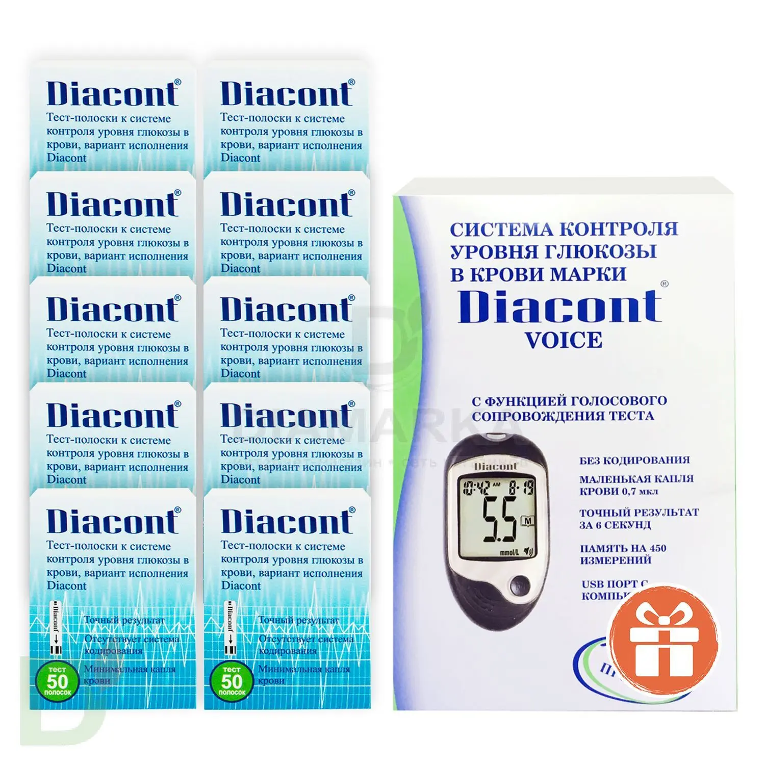 Глюкометр говорящий Diacont Voice + 10 уп. тест-полосок № 50