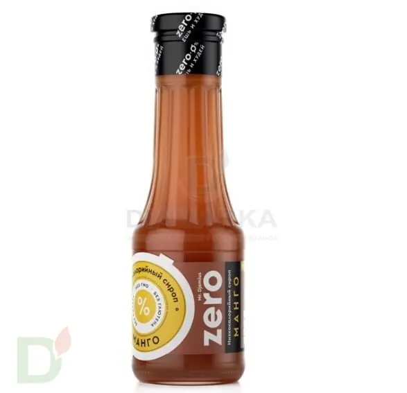 <h2>Насыщенный вкус экзотического фрукта и минимум калорий</h2> <p> Уже первая ложечка этого сиропа унесет ваши мысли в тропики! Вкус новинки настолько натуральный и насыщенный, что любители сочного экзотического манго точно его оценят. И самое главное - за все это удовольствие не придется платить сантиметрами на талии или высоким сахаром крови. </p> <h2>Добавляйте низкокалорийный сироп в любимые блюда</h2> <p> Разнообразьте им фруктовый салат, добавьте к йогурту, творогу, мороженому. А еще манговый сироп отлично подойдет для приготовления коктейлей. Варианты использования сиропа зависят от границ вашей фантазии. Уверены, вы наверняка придумаете, куда добавить эту вкуснятину! </p> <h2>В 100 граммах сиропа всего 5,2 углевода</h2> <p> БЖУ и калорийность на 100 грамм: Белки 0,18 г Жиры 0,008 г Углеводы 5,2 г  </p> <p>  21,57 ккал  </p> <h2>Состав низкоуглеводного сиропа </h2> <p> вода, сок манго восстановленный, эритрит, изомальтит, ксантановая камедь, сорбиновая кислота, лимонная кислота, ваниль, стевия.  </p>