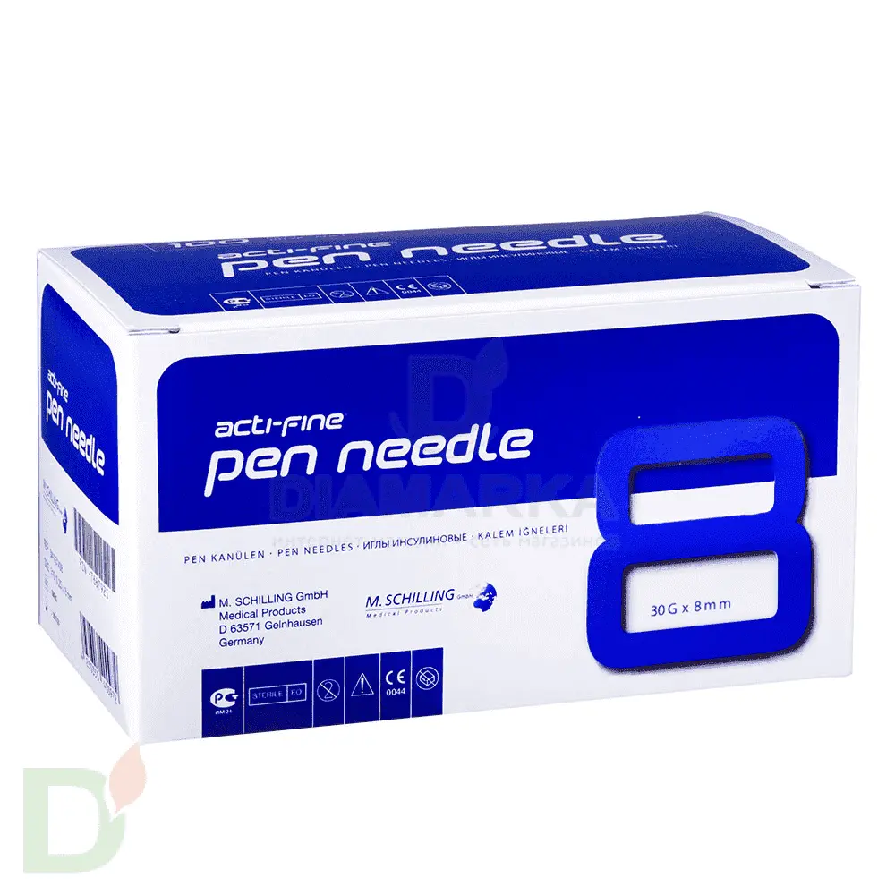 Иглы Акти-Файн (Acti-Fine) 30G, длина 8 мм, 100 штук, для шприц ручек