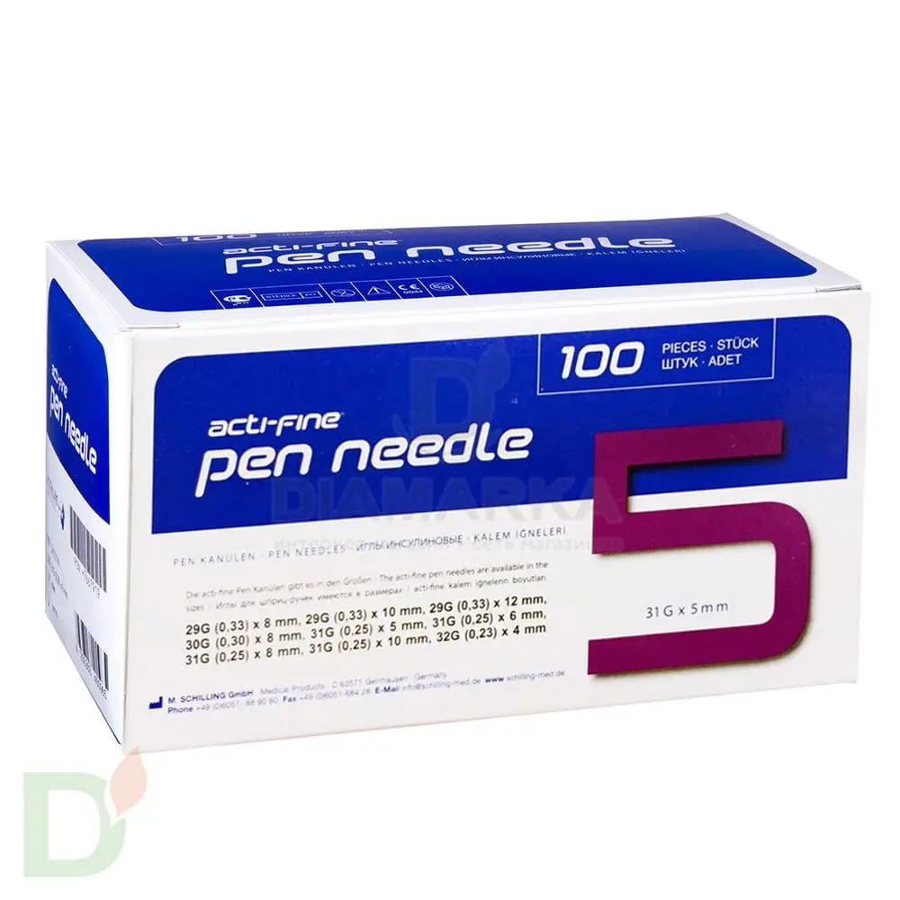 Иглы Акти-файн / Acti-fine 31G для шприц-ручек, длина 5 мм, 100 шт.